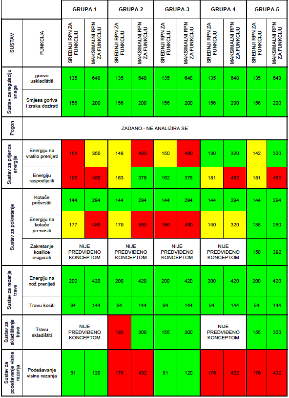 Cilj ovog rada je dati ocjenu pouzdanosti koncepata kosilica za travu FMEA metodom. Na početku će se razmatrati pojam pouzdanosti i njezin utjecaj na proizvod, njegove funkcije i karakteristike, kao i na prodajne rezultate. Iz ovog razmatranja proizaći će razlozi za postupak analize pouzdanosti kao podloge za njeno unapređenje. Slijedi prikaz FMEA metode analize pouzdanosti kao najčešće korištene metode. Razmotrit će se temeljni principi ove metode, njezin razvoj, razlozi primjene i primjeri razvojnih procesa i industrija koje je primjenjuju. Dano je detaljno objašnjenje načina izvođenja analize, od odabira problema te potrebnih resursa i informacija do interpretacije rezultata i postupaka koji trebaju uslijediti nakon završetka analize. Provedba analize prikazana je na primjeru pet koncepata motorne kosilice koji će biti analizirani do razine glavnih podsustava. Rezultati analize svih koncepata uspoređuju se sa svrhom usporedbe koncepata po kriteriju pouzdanosti te određivanja daljnjih smjernica za povećanje pouzdanosti koncepta koji će biti daljnje razrađivan.